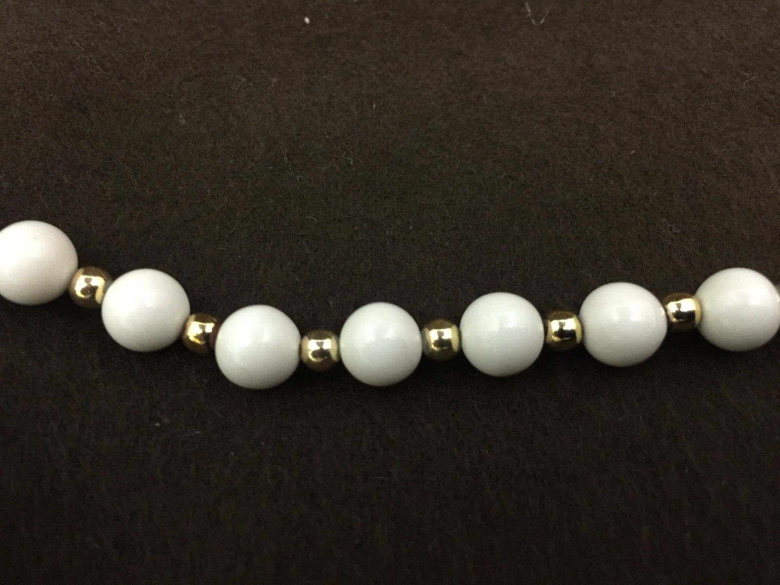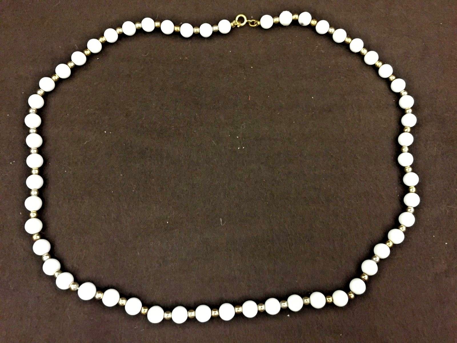 Vintage Costume Jewelry, White and Gold Bead, Faux Pearl, Strand Necklace NK02