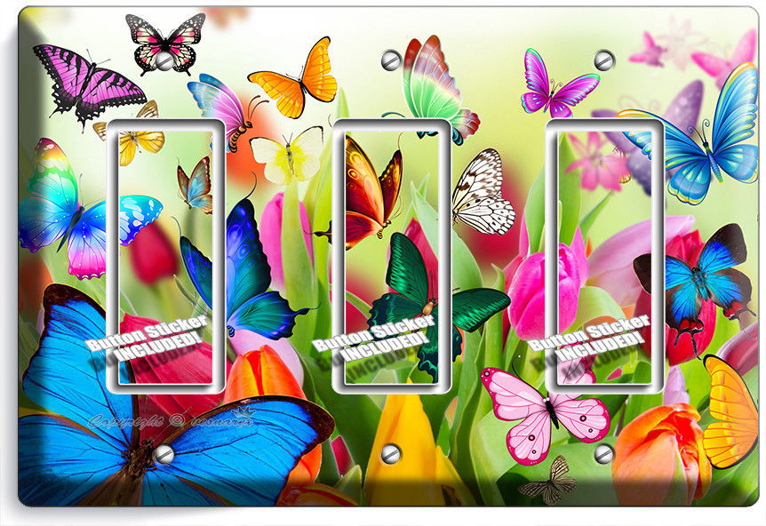 BUTTERFLIES TULIPS FLOWERS FLORAL LIGHT SWITCH 3 GFCI WALL PLATE ROOM HOME DECOR