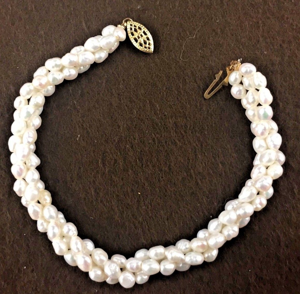 Vintage Costume Jewelry, Triple Strand, Faux Baroque Pearl Bracelet, 8" Vintage Costume Jewelry Bracelet
