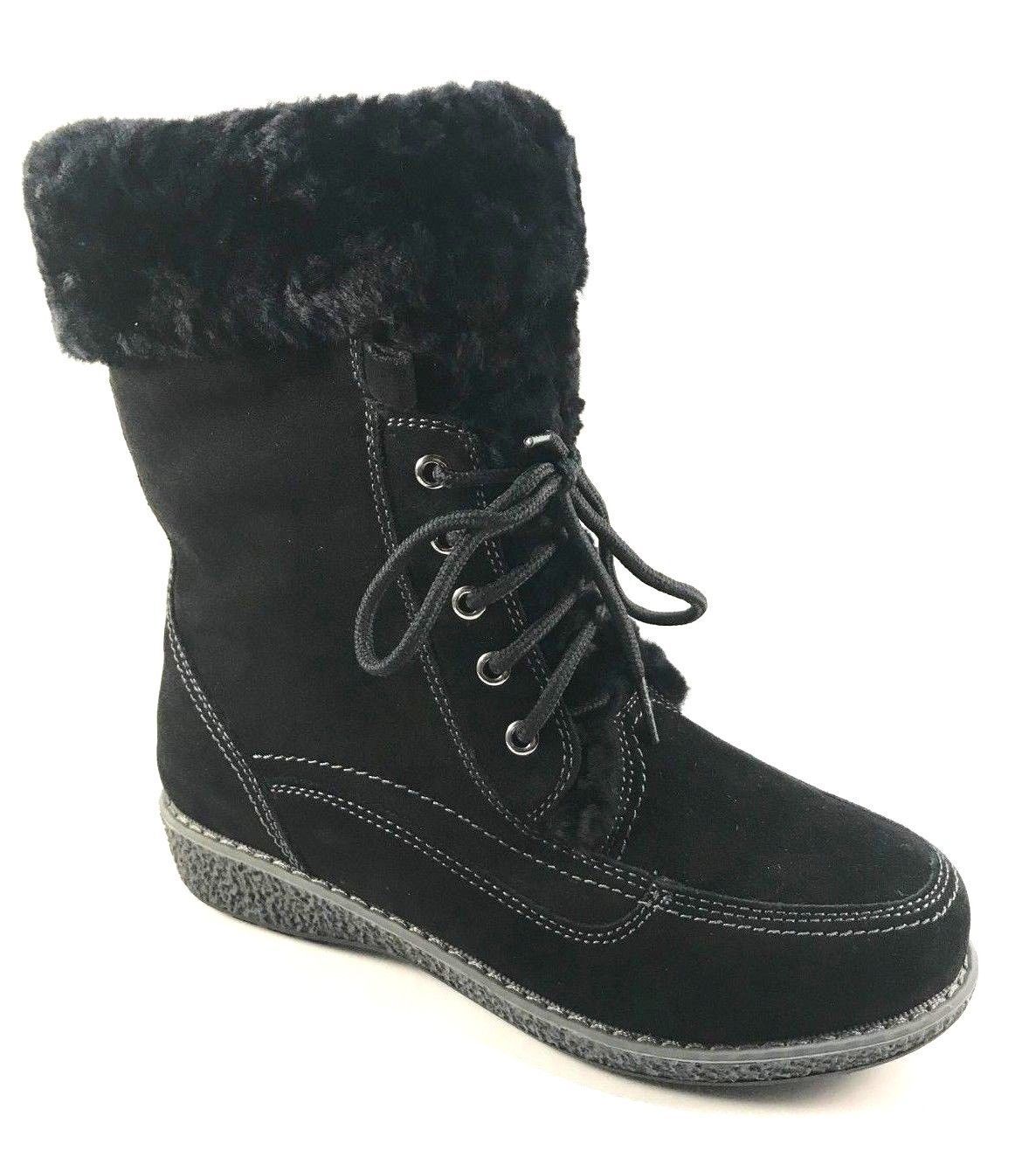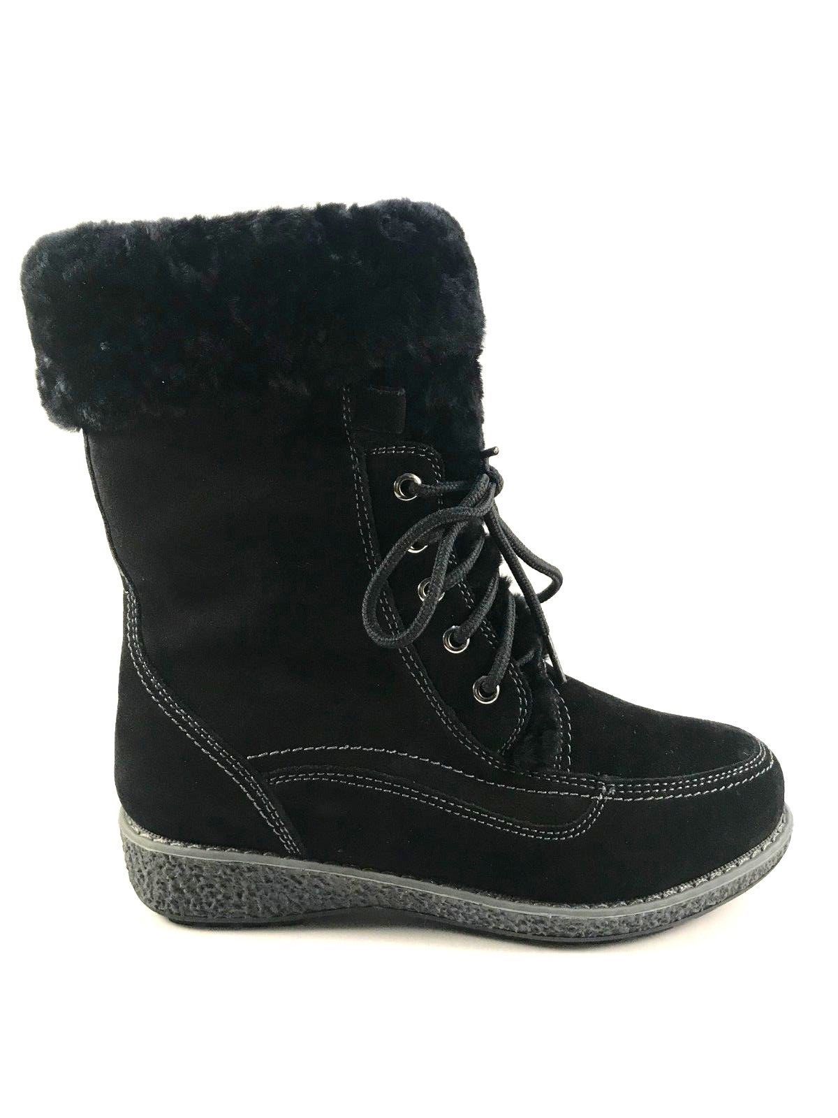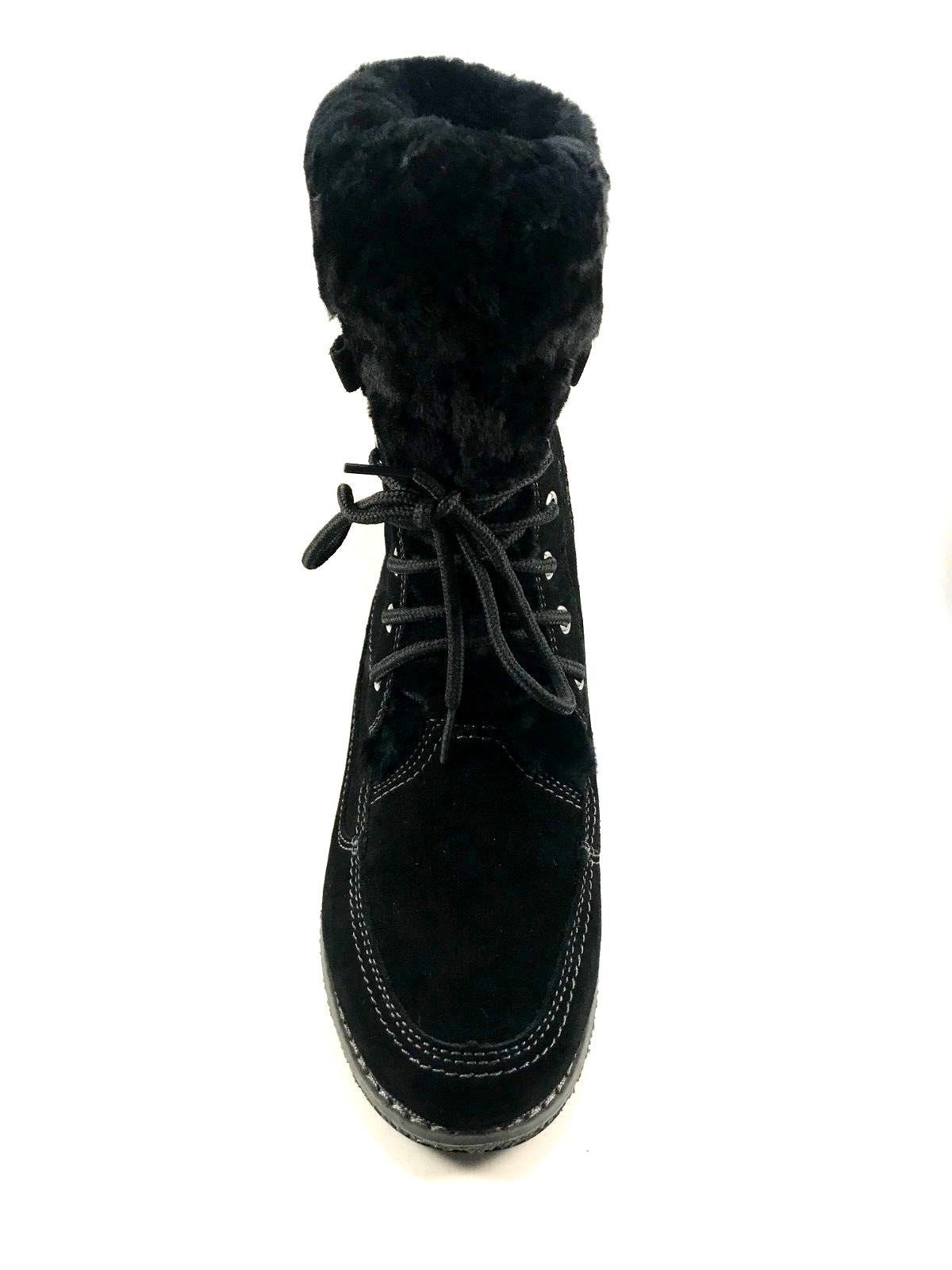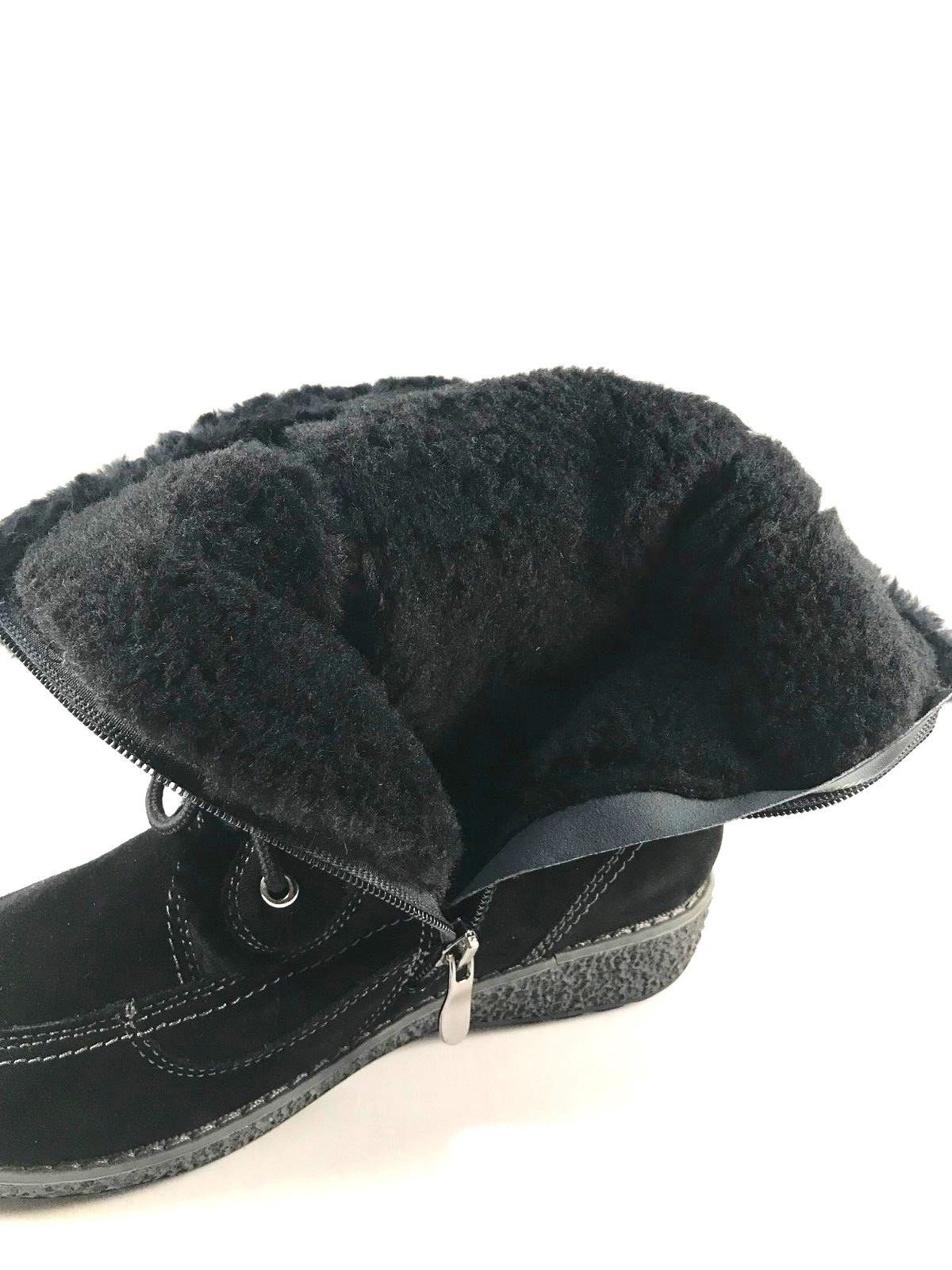 BoNavi 77J7-917 Black Suede Leather Round Toe Low Wedge Winter Boots