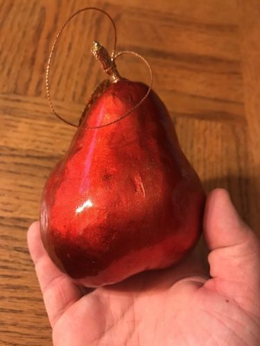 Christmas Glittery Pear Hanging Ornament-Rare Vintage-SHIPS N 24 HOURS