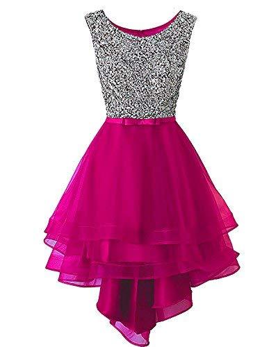 Vintage Beaded High Low Sheer Organza Prom Evening Formal Dresses Fuchsia US 2