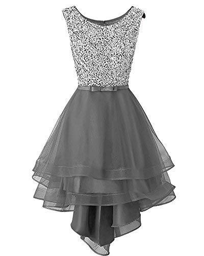 Kivary Vintage Beaded High Low Sheer Organza Prom Evening Formal Dresses Gray US