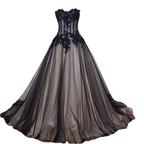 Kivary Sweetheart Long Black and Champagne Lace Tulle Gothic Corset Prom Wedding
