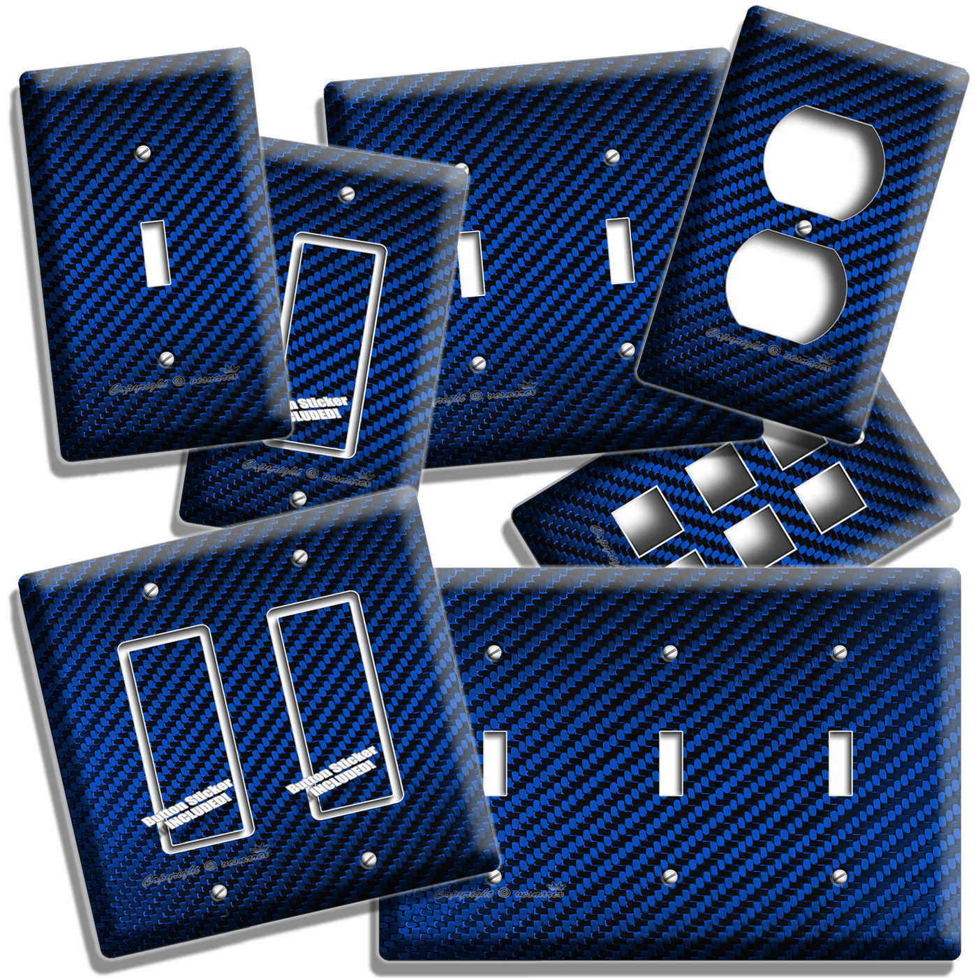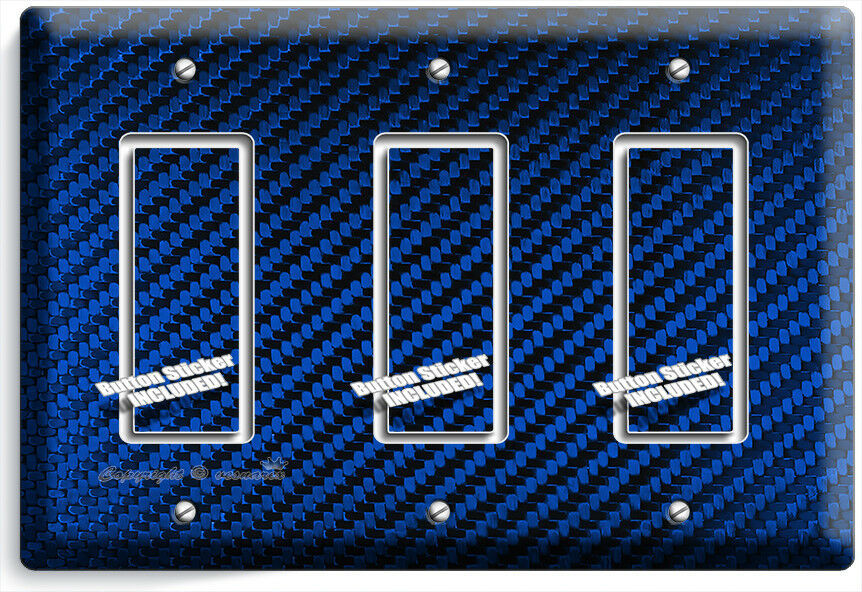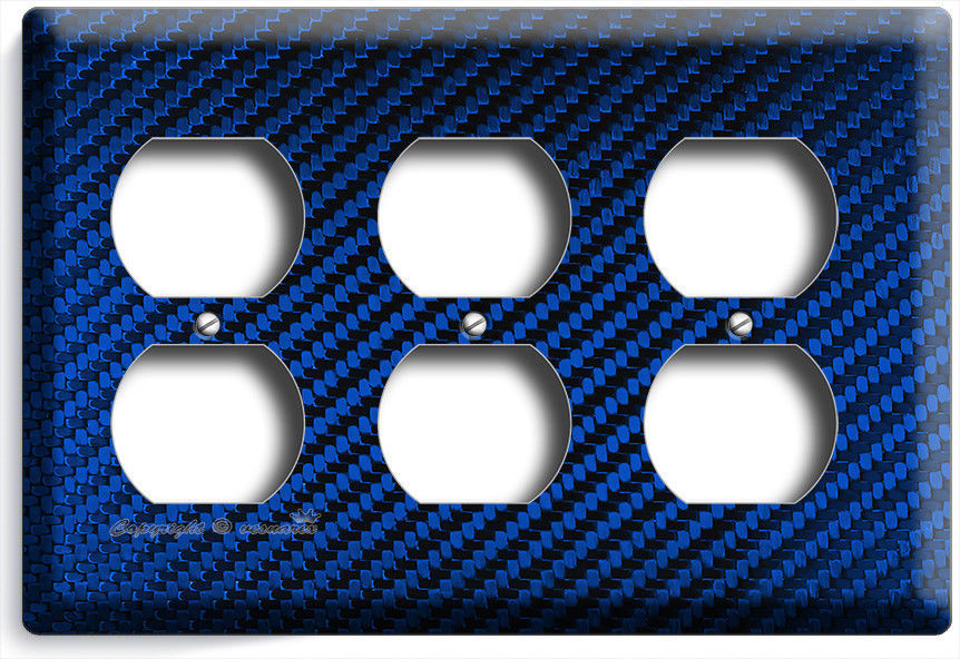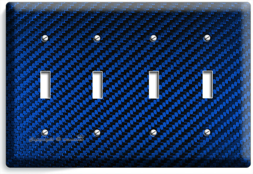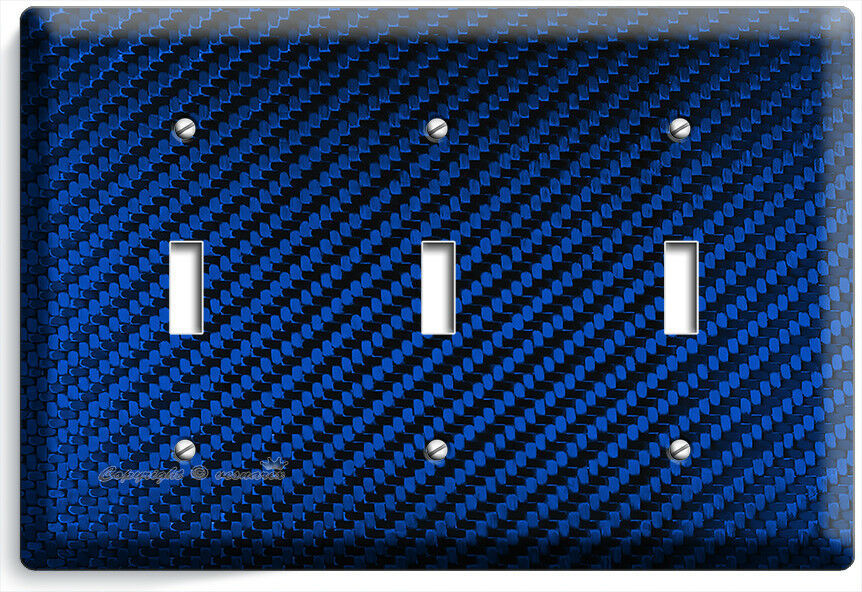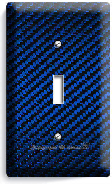 NAVY BLUE CARBON FIBER LOOK LIGHT SWITCH OUTLET COVER WALL PLATE GARAGE HD DECOR