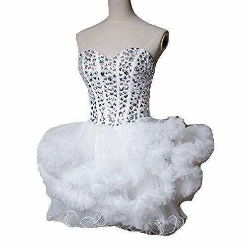 Strapless sweetheart neckline boned white top with shiny silver crystals, knee length ruffles ball gown skirt laides formal dresses for women, it can also be used as prom dresses, homecoming dresses, holiday dresses, party dresses, graduation dresses, cocktail dresses, wedding guest dresses, sweet 16, birthday party dresses etc, Lace up back, plus size