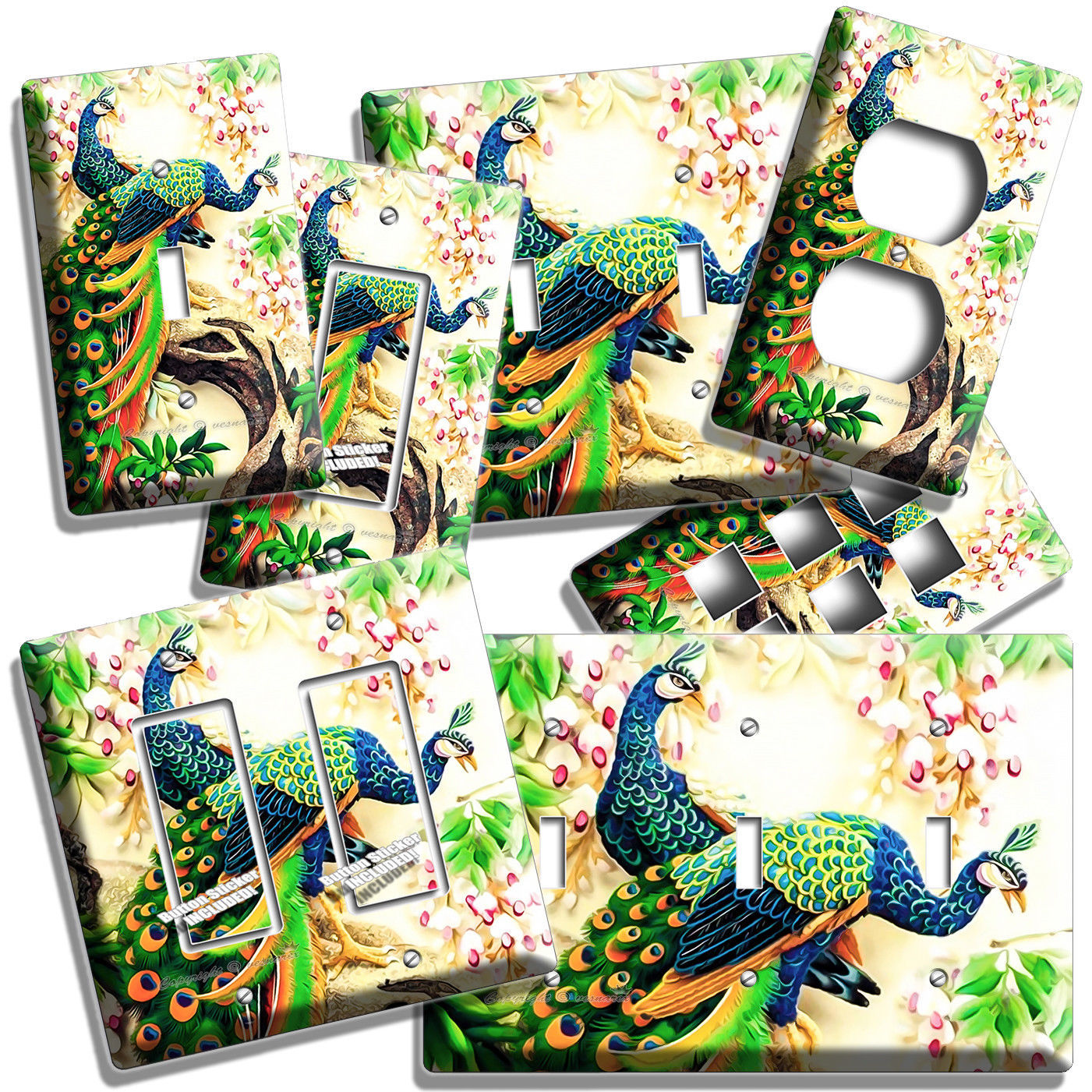PEACOCKS LOVE BIRDS FLOWERS TREE LIGHT SWITCH OUTLET WALL PLATES ROOM HOME DECOR
