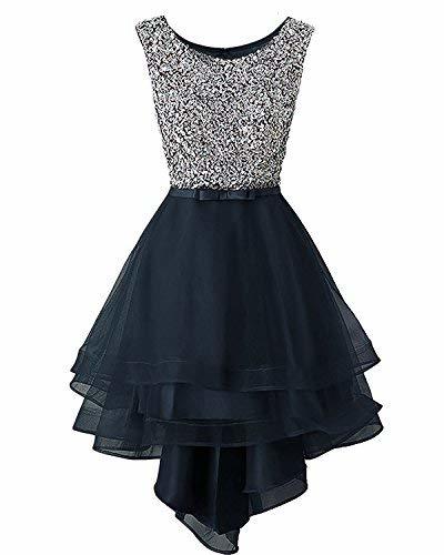 Kivary Vintage Beaded High Low Sheer Organza Prom Evening Formal Dresses Dark Na