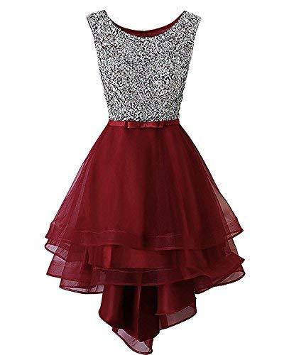 Kivary Vintage Beaded High Low Sheer Organza Prom Evening Formal Dresses Burgund