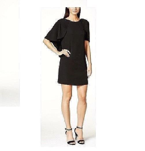 Calvin Klein Black New Batwing-sleeve Caplet Shift Cocktail Dress Petites 4P