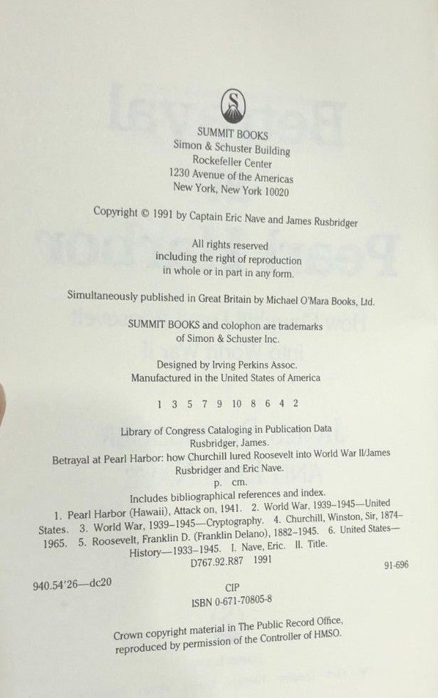 BETRAYAL AT PEARL HARBOR by J. Rusbridger & E. Nave (1991) Summit illust HC 1st