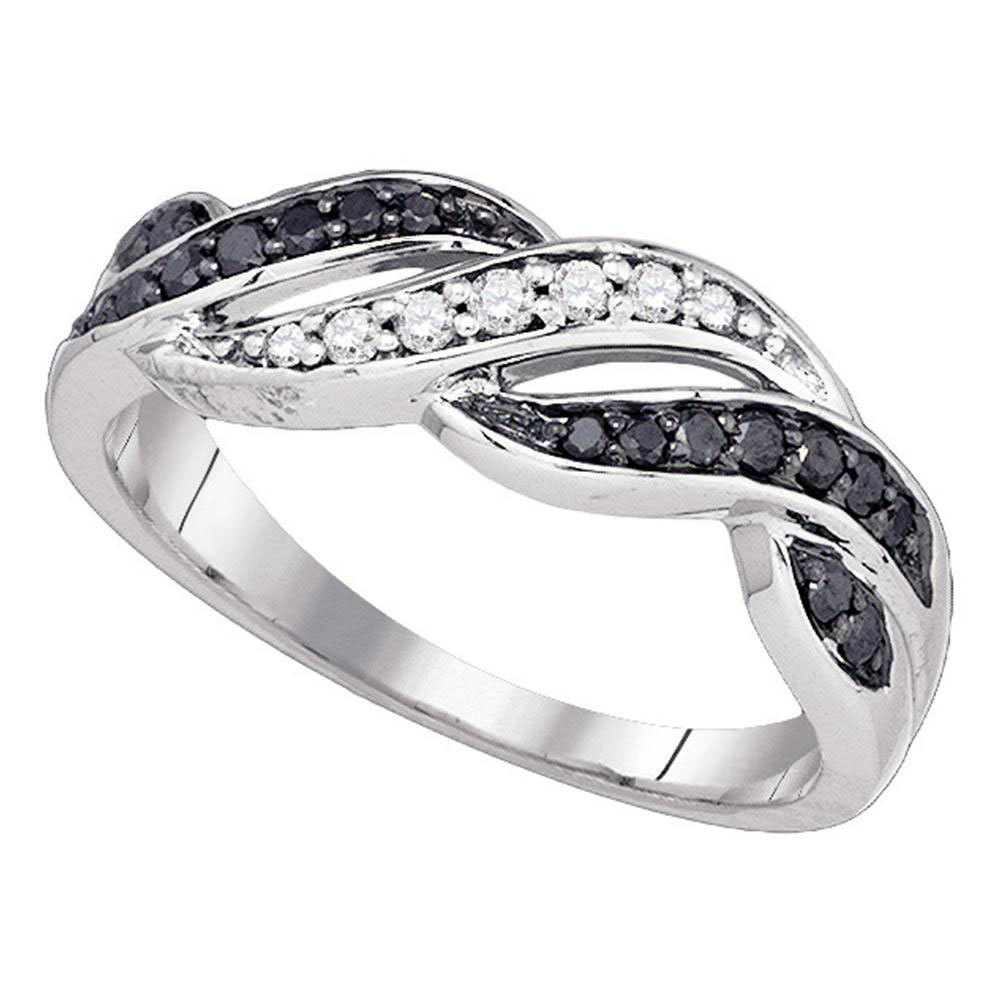 10kt White Gold Womens Round Black Color Enhanced Diamond Infinity Weave Band 1/4 Cttw