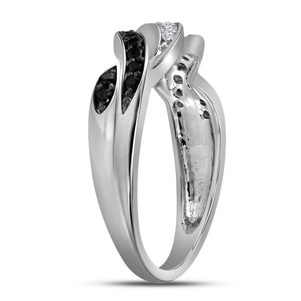 10k White Gold Womens Round Black Color Enhanced Diamond Infinity Weave Band 1/4