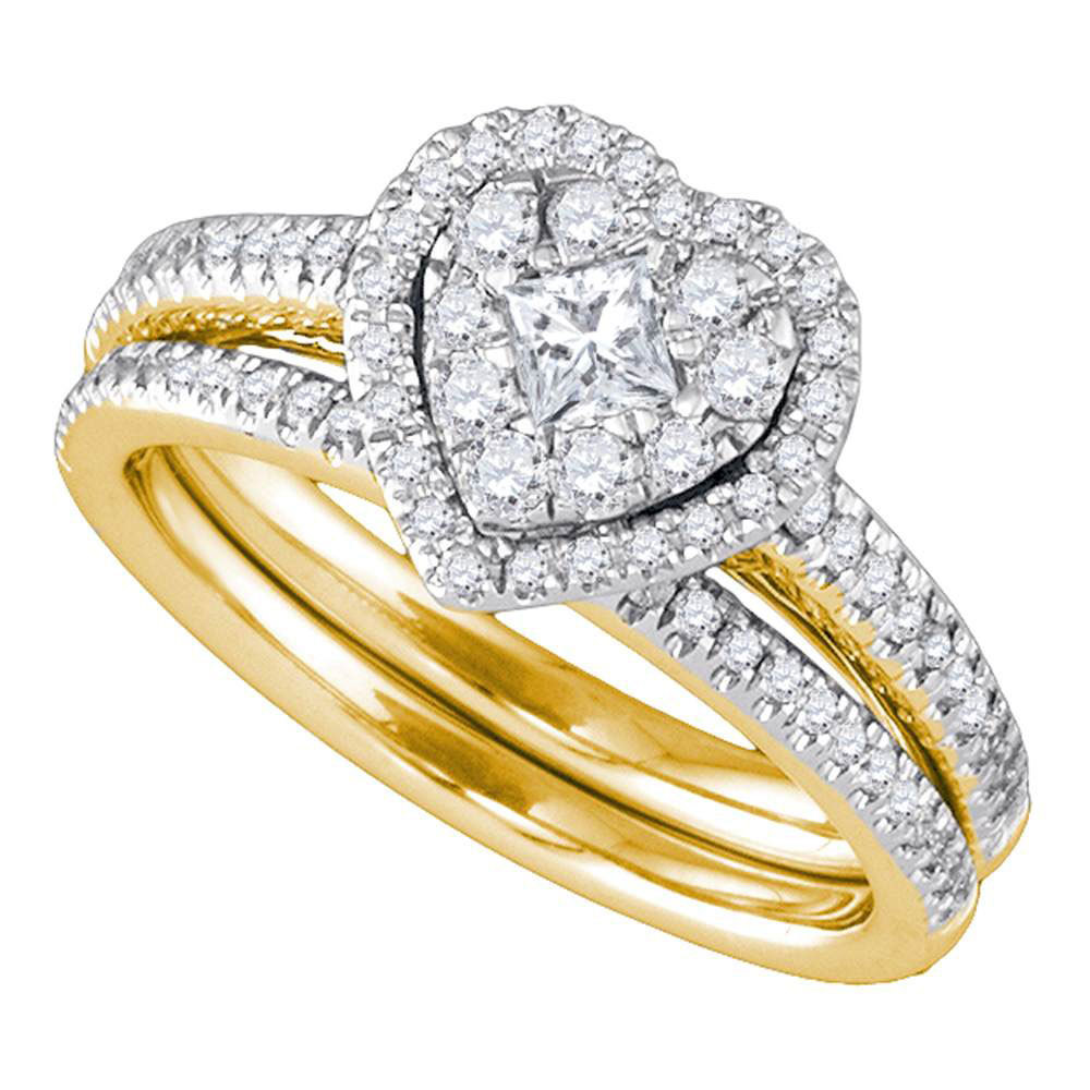 14kt Yellow Gold Womens Princess Diamond Heart Bridal Wedding Engagement Ring Band Set 3/4 Cttw
