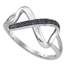 10kt White Gold Womens Round Black Color Enhanced Diamond Infinity Ring 1/10 Cttw