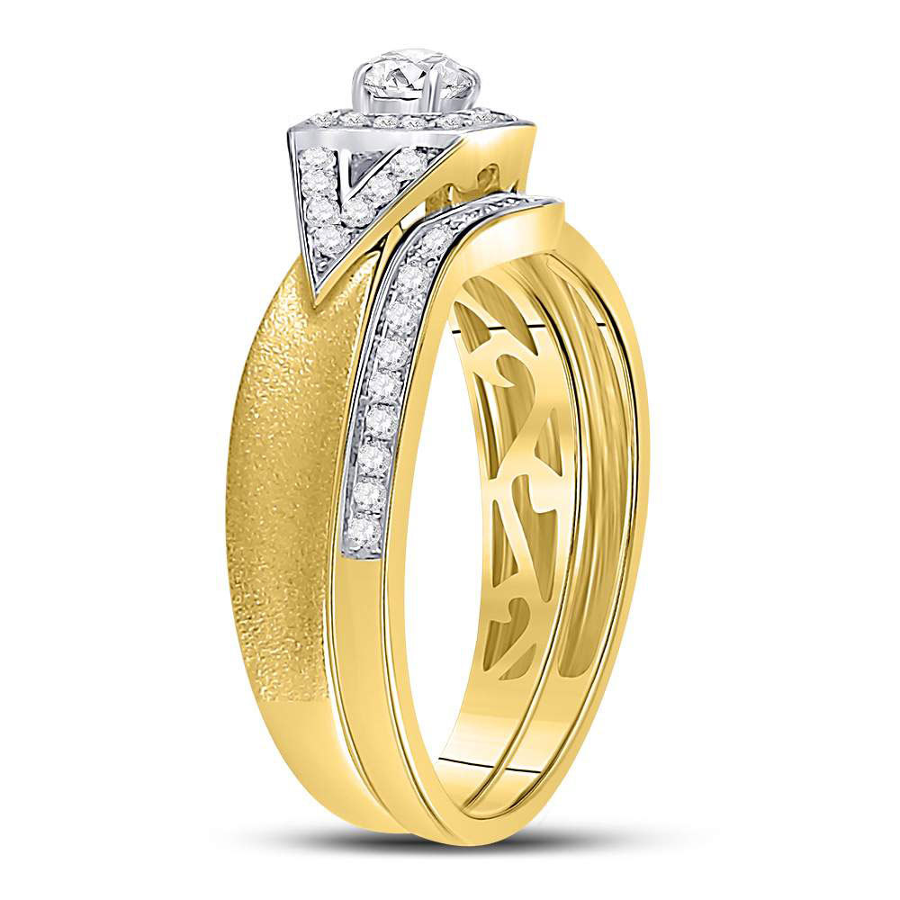 14kt Yellow Gold Round Diamond Bridal Wedding Engagement Ring Band Set 3/8 Ctw