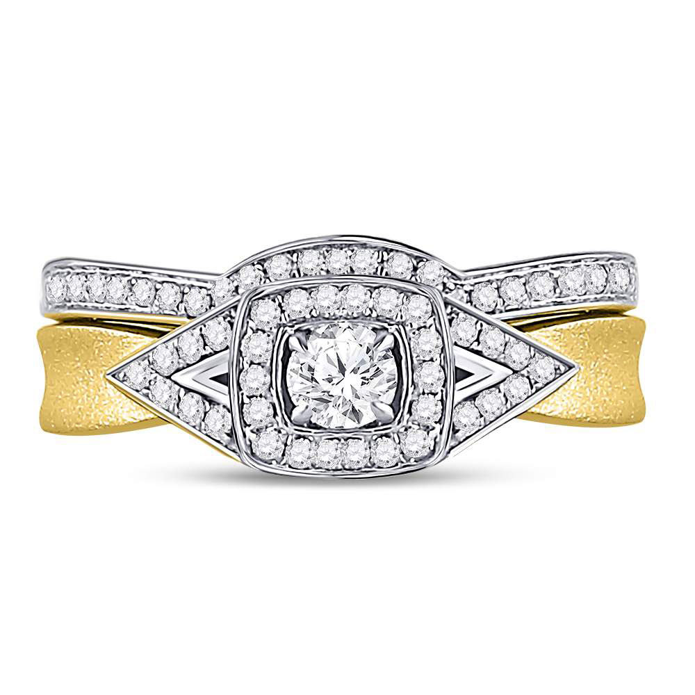 14kt Yellow Gold Womens Round Diamond Bridal Wedding Engagement Ring Band Set 1/2 Cttw