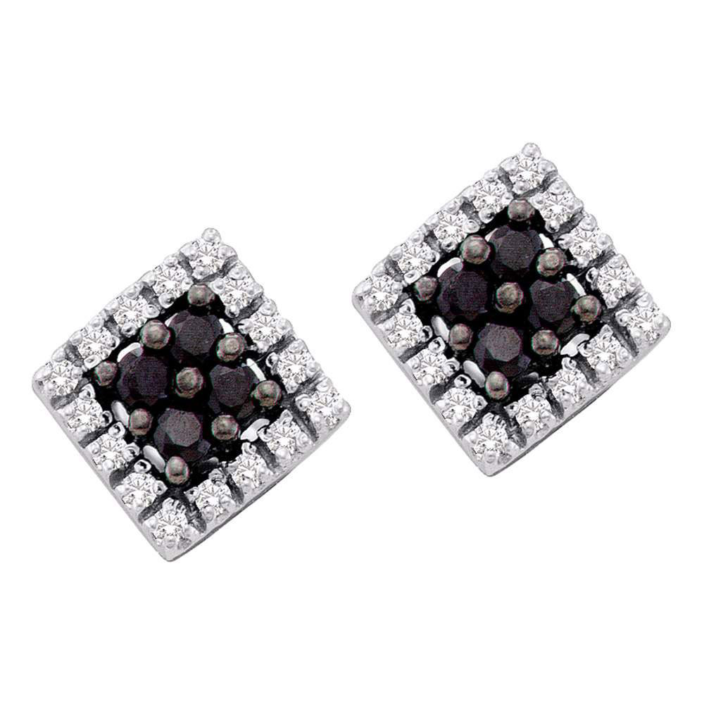 10kt White Gold Womens Round Black Color Enhanced Diamond Square Cluster Screwback Earrings 1/3 Cttw