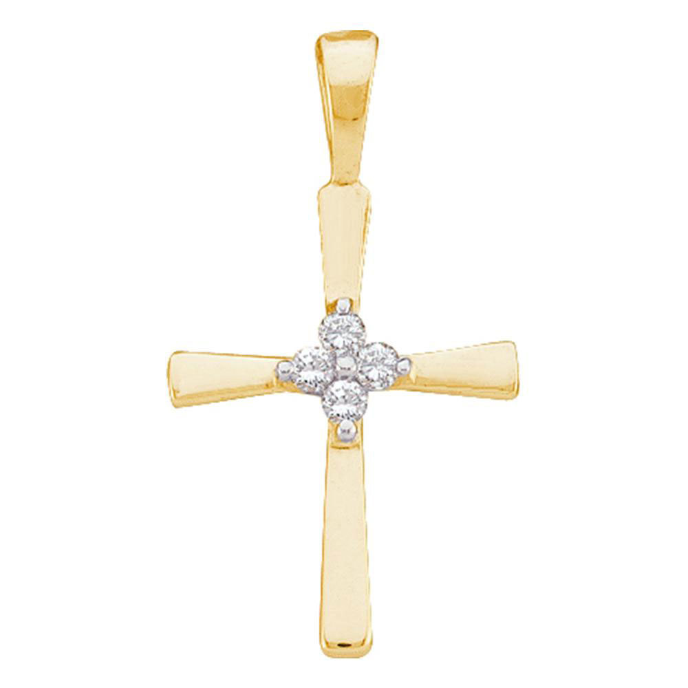14k Yellow Gold Womens Round Diamond Cluster Small Cross Faith Pendant 1/20 Ctw