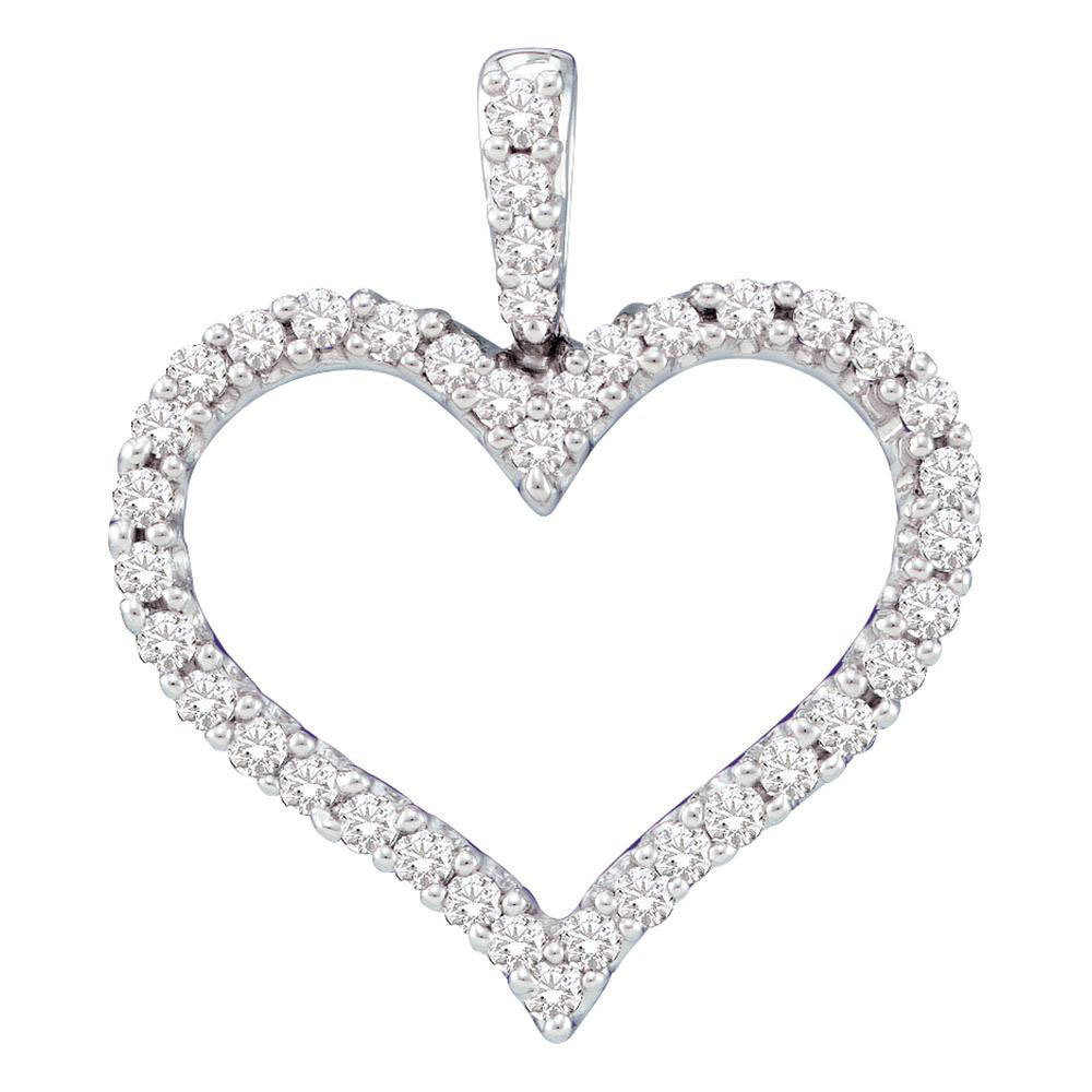 14k White Gold Womens Round Diamond Classic Heart Outline Pendant 1/2 Cttw