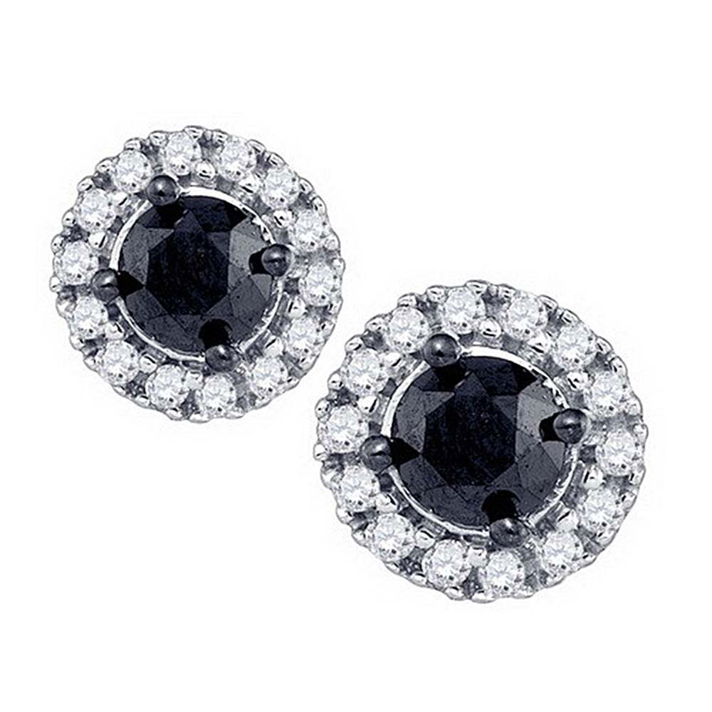 10kt White Gold Womens Round Black Color Enhanced Diamond Solitaire Circle Frame Earrings 1.00 Cttw