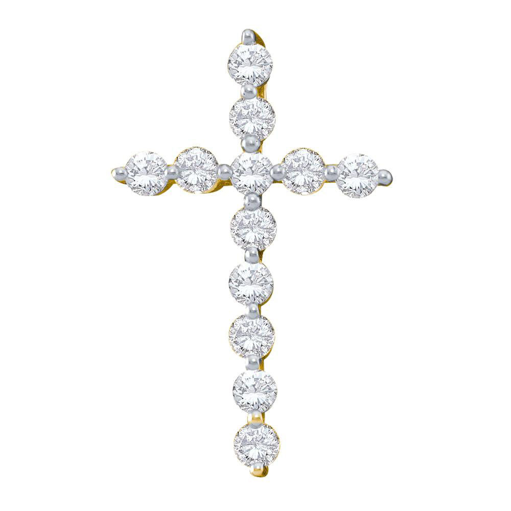 14k Yellow Gold Womens Round Pave-set Diamond Cross Pendant 1/2 Cttw