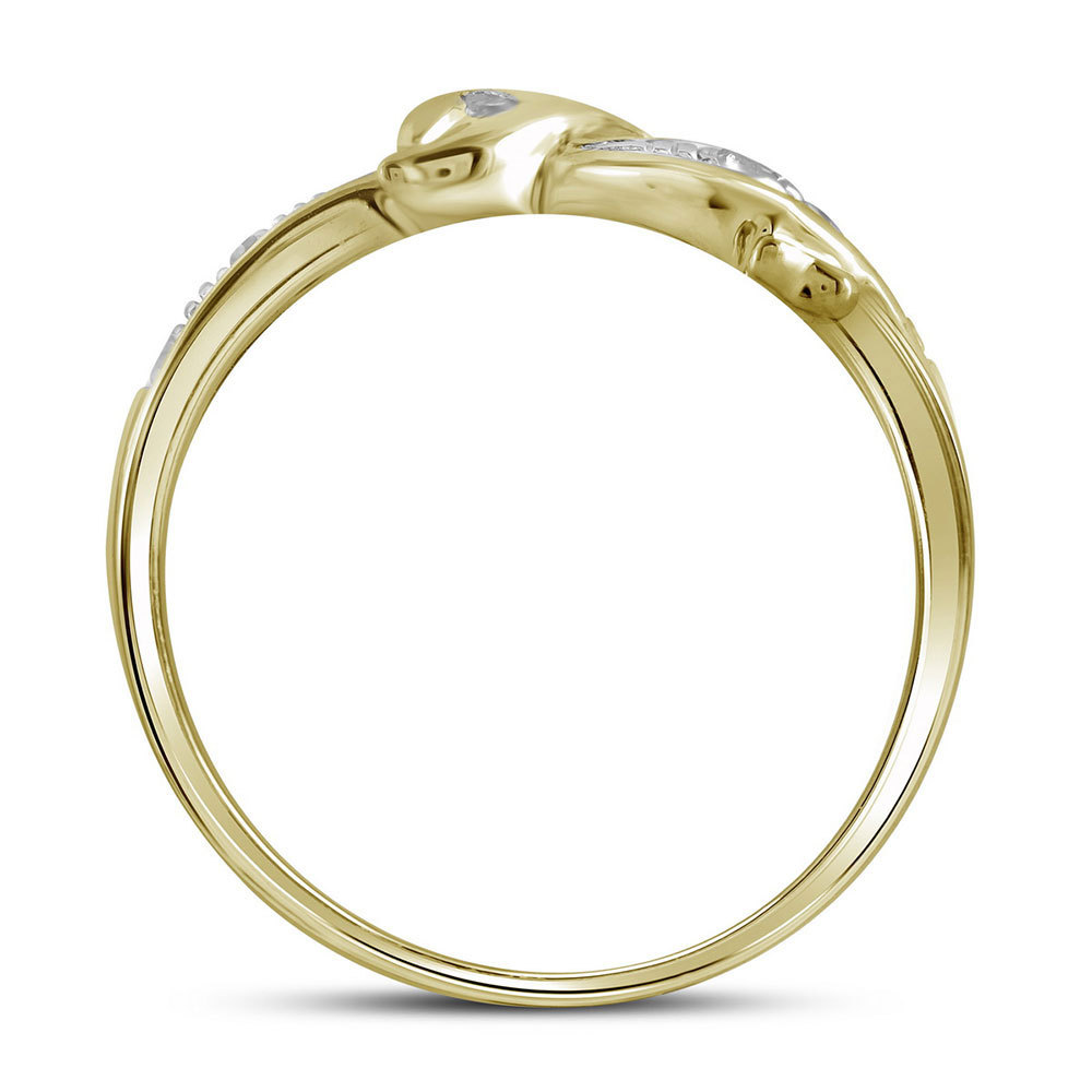10k Yellow Gold Womens Round Diamond Two-tone Dolphin Fish Animal Ring 1/20 Cttw