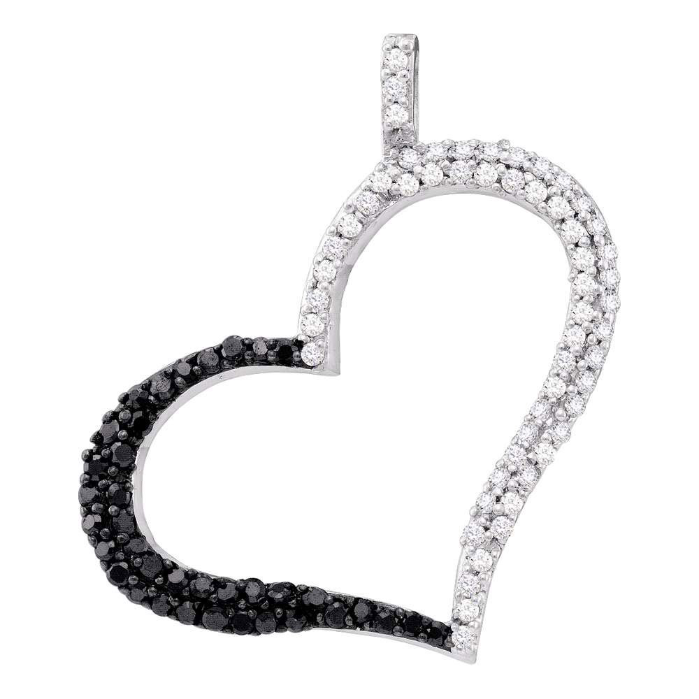 10k White Gold Womens Round Black Color Enhanced Diamond Heart Outline Pendant