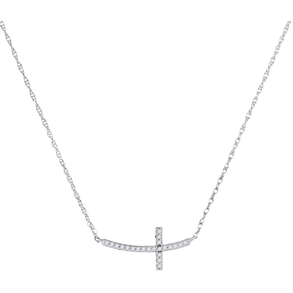 10k White Gold Womens Round Diamond Small Horizontal Cross Pendant Necklace