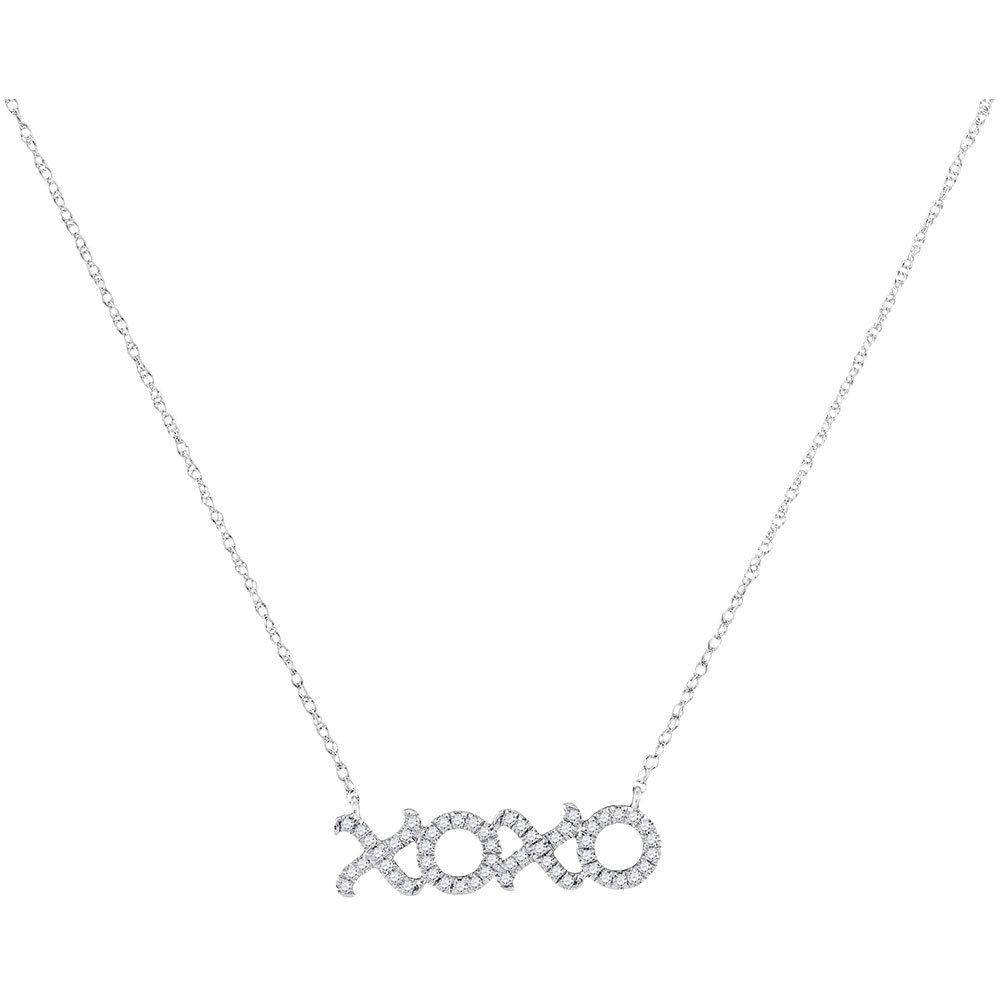 10kt White Gold Womens Round Diamond XOXO Hugs Kisses Letter Pendant Necklace 1/6 Cttw