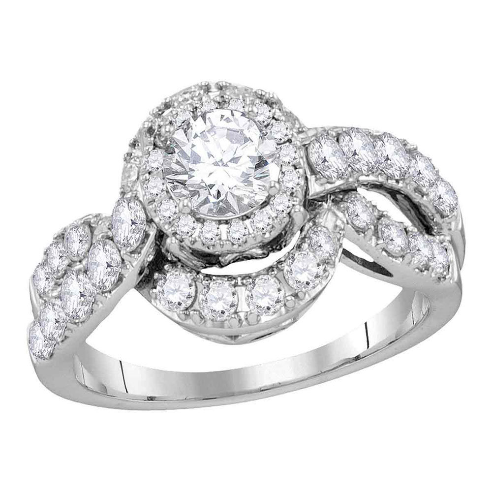 14k White Gold Round Diamond Bridal Wedding Engagement Anniversary Ring 2 Cttw
