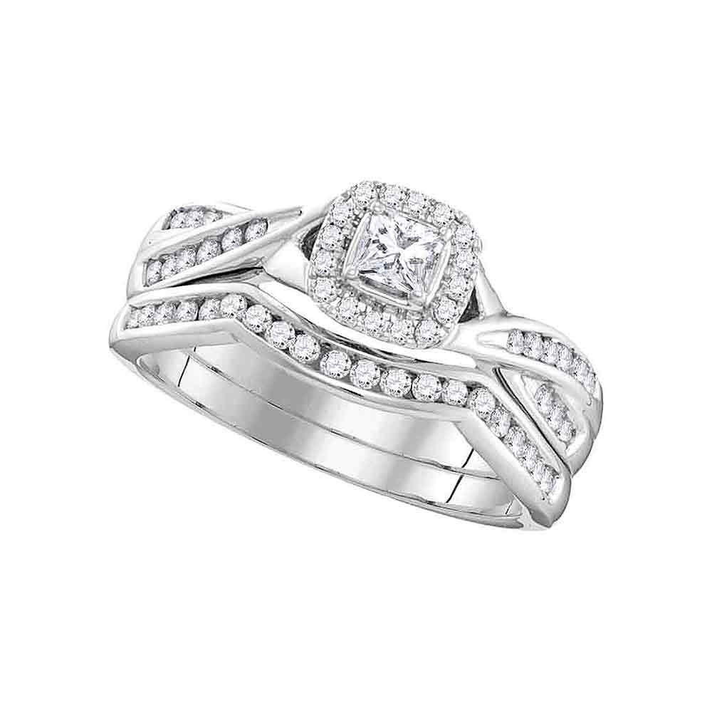 10k White Gold Princess Diamond Bridal Wedding Engagement Ring Band Set 1/2 Cttw