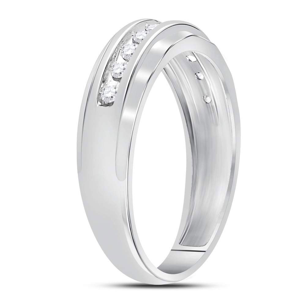 10kt White Gold Mens Round Diamond Single Row Grooved Wedding Band Ring 1/4 Cttw
