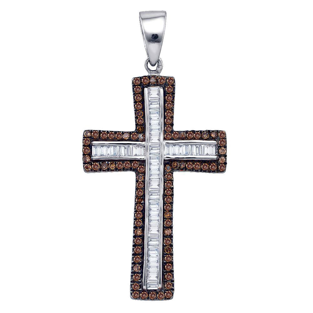 Sterling Silver Round Brown Color Enhanced Diamond Cross Outline Pendant 1-1/10