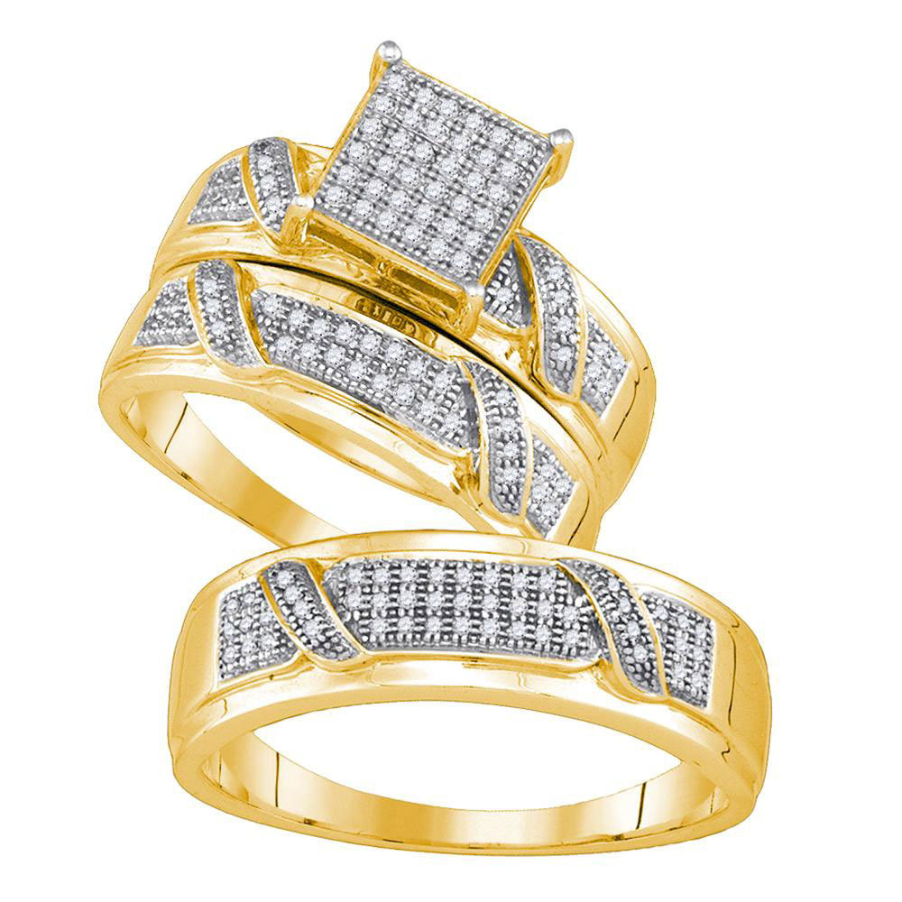 Yellow-tone Sterling Silver His Hers Round Diamond Cluster Matching Bridal Wedding Ring Band Set 1/3 Cttw