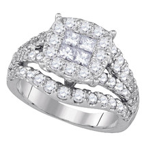 14kt White Gold Princess Diamond Cluster Bridal Wedding Engagement Ring 2-1/2