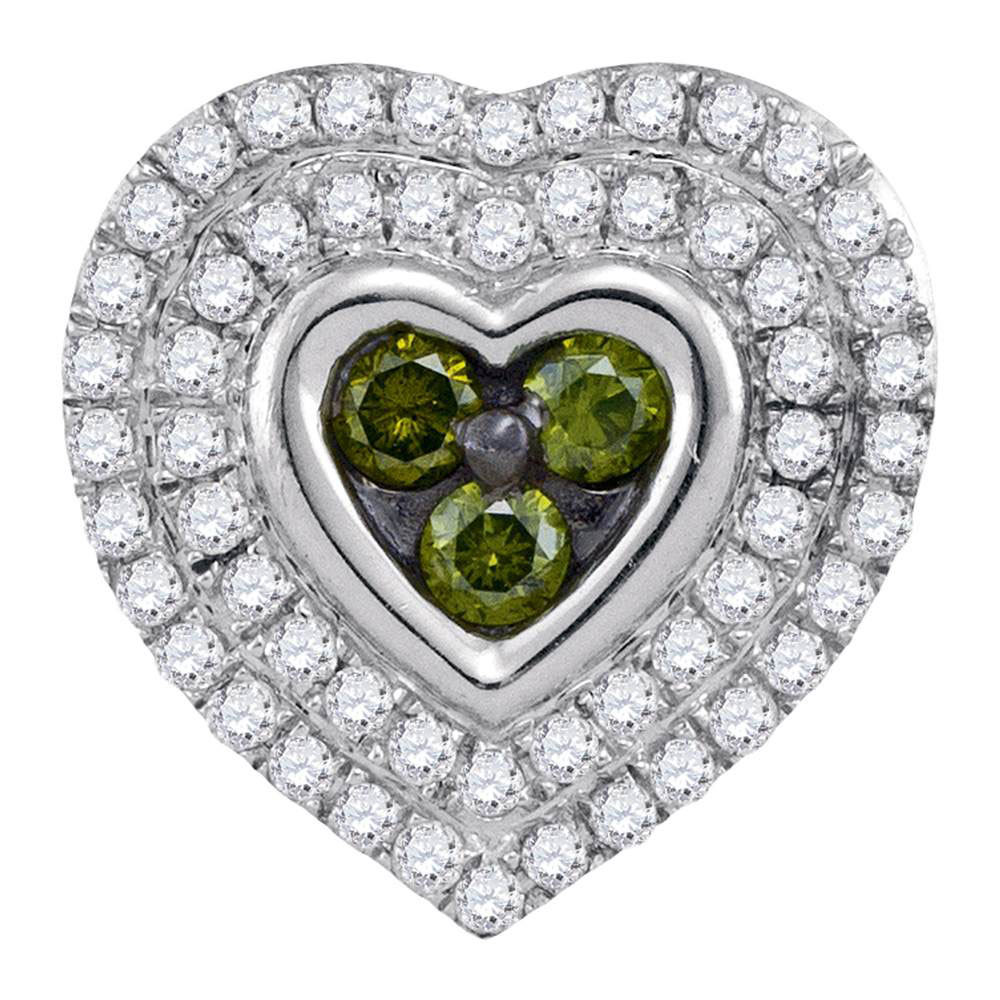 10kt White Gold Womens Round Green Color Enhanced Diamond Heart Cluster Pendant 1/2 Cttw