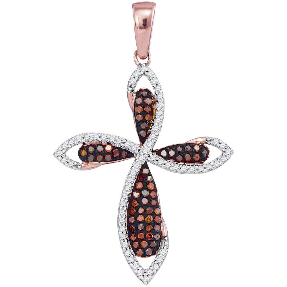 10kt Rose Gold Womens Round Red Color Enhanced Diamond Cross Faith Pendant 1/3 Cttw