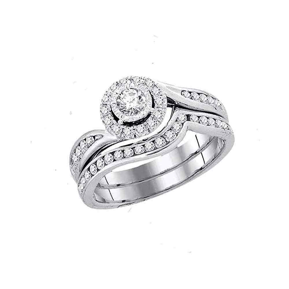 14k White Gold Round Diamond Bridal Wedding Engagement Ring Band Set 3/4 Ctw