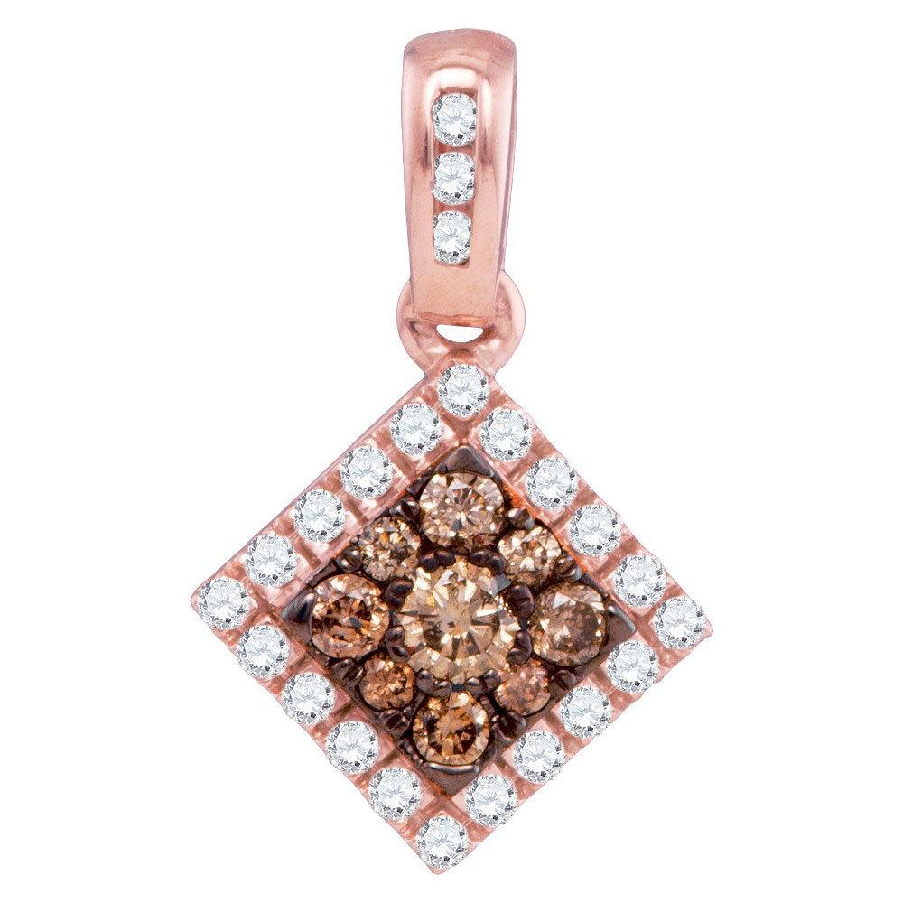 10kt Rose Gold Womens Round Cognac-brown Color Enhanced Diamond Diagonal Square Frame Pendant 1/3 Cttw