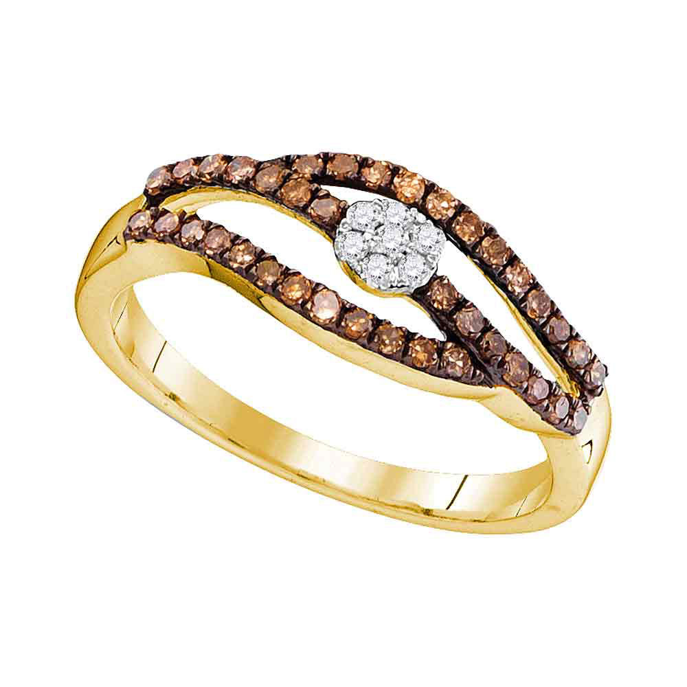 10kt Yellow Gold Womens Round Cognac-brown Color Enhanced Diamond Strand Cluster Ring 1/3 Cttw