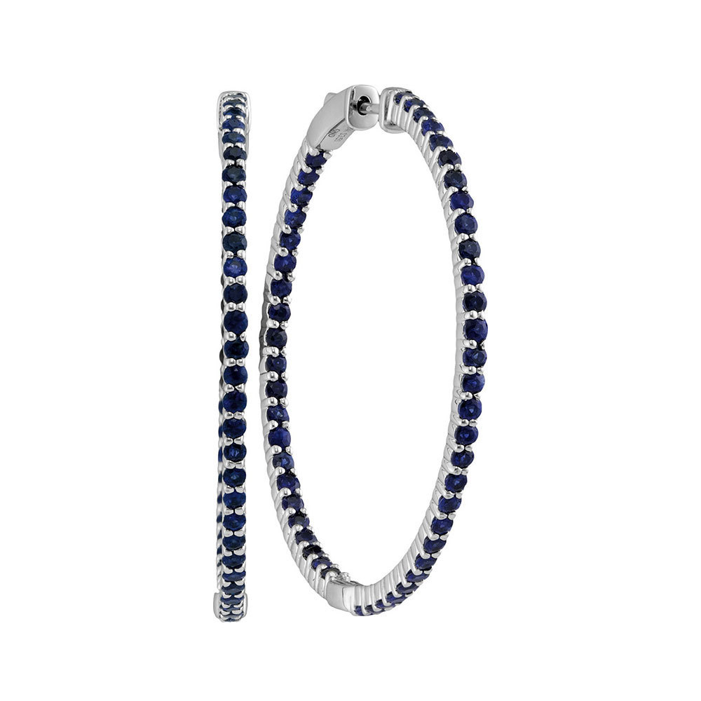 14k White Gold Round Blue Sapphire Hoop Fashion Earrings 3-3/4 Ctw