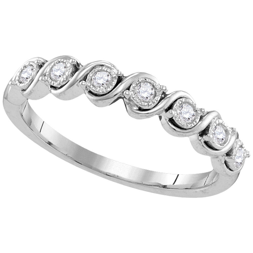 10k White Gold Womens Round Diamond Band Fashion Ring 1/6 Cttw