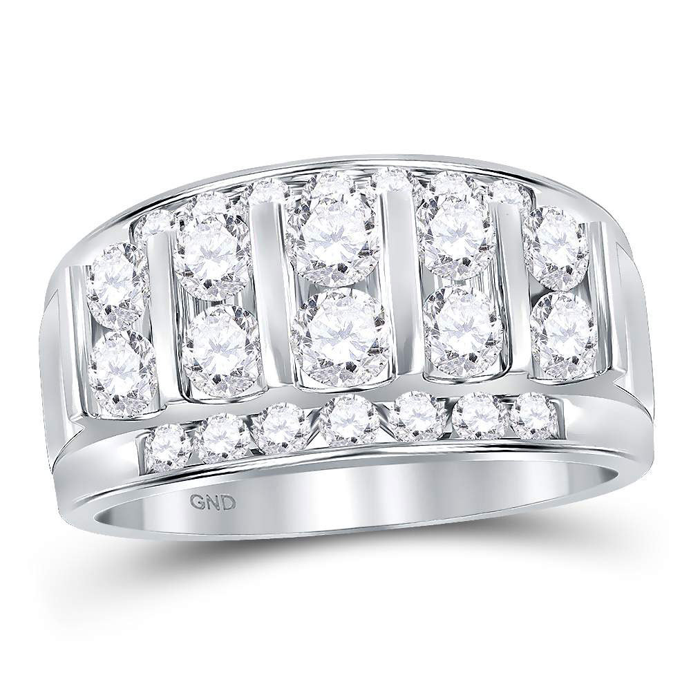 14kt White Gold Mens Round Channel-set Diamond Striped Wedding Band Ring 2.00 Cttw
