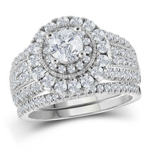 14kt White Gold Round Diamond Bridal Wedding Engagement Ring Band Set 2.00 Ctw