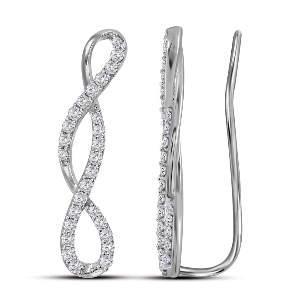 10kt White Gold Womens Round Diamond Infinity Climber Earrings 1/2 Cttw