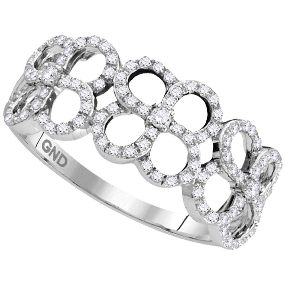 10k White Gold Womens Round Diamond Quatrefoil Circle Band Ring 1/3 Cttw