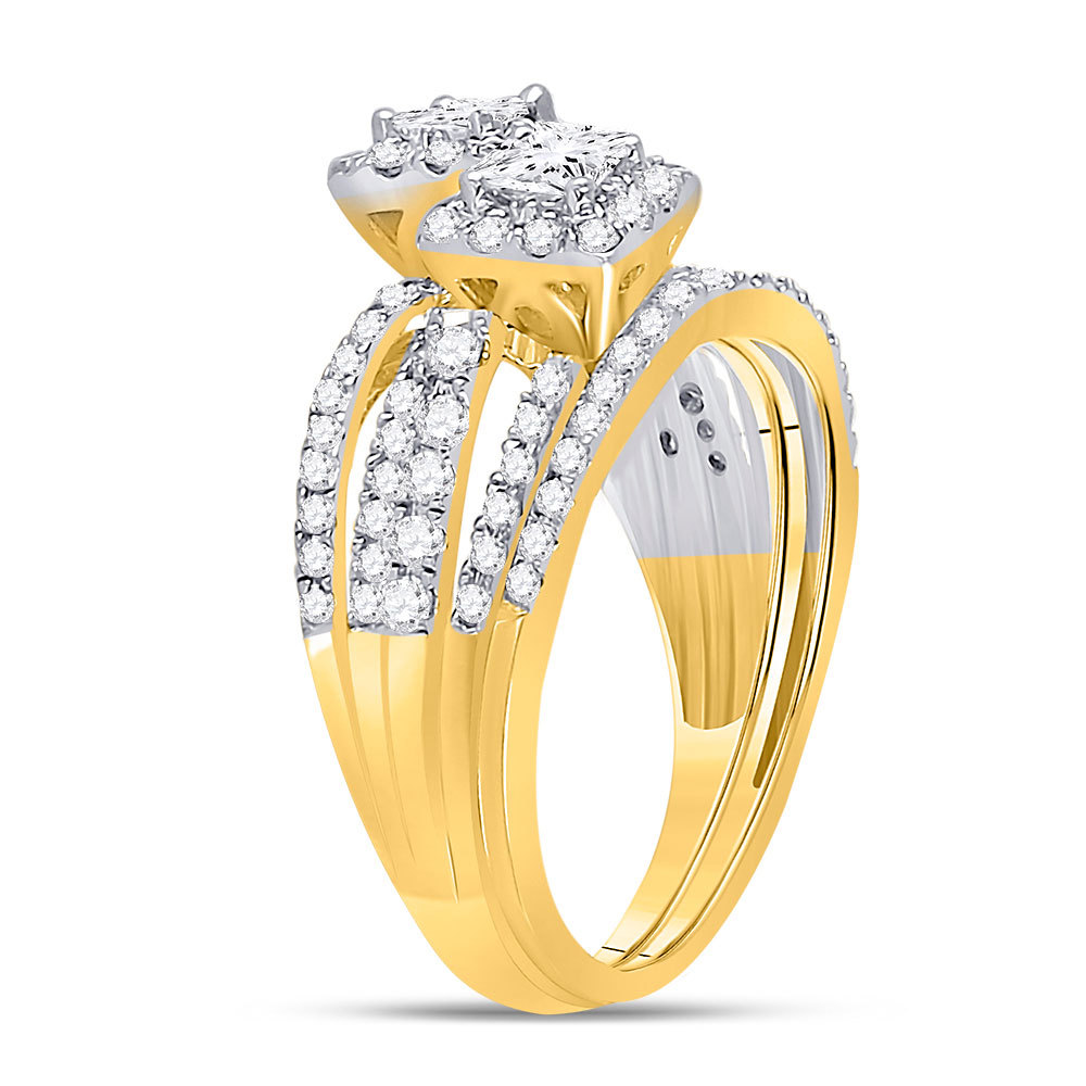 14kt Yellow Gold Princess Diamond 2-Stone Bridal Wedding Ring Set 1.00 Ctw