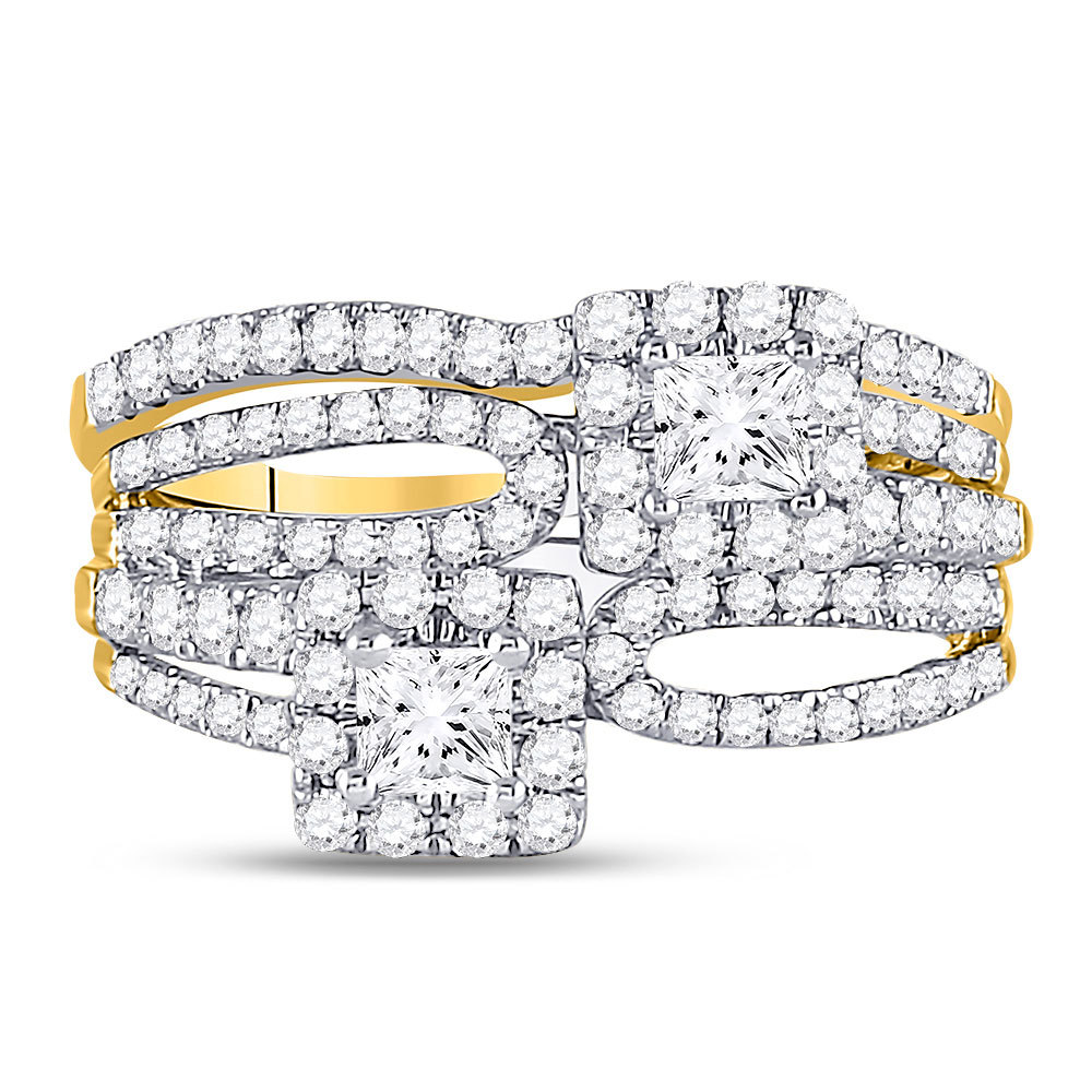 14kt Yellow Gold Womens Princess Diamond 2-Stone Bridal Wedding Engagement Ring Band Set 1.00 Cttw