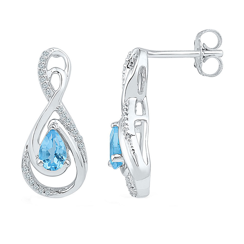 Sterling Silver Womens Pear Lab-Created Blue Topaz Fashion Earrings 1.00 Cttw